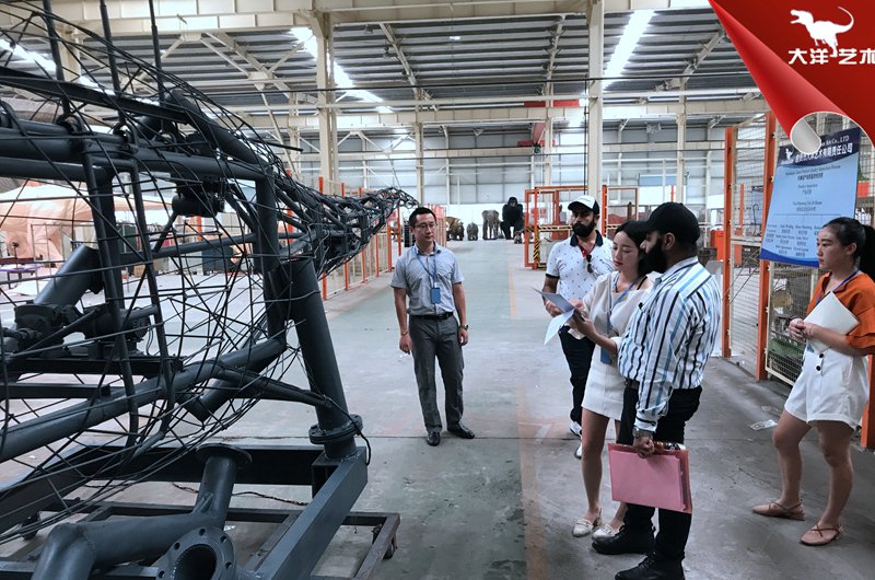 2019年5月,立陶宛客戶到廠參觀,定制一批恐龍化石,與負責人合影留念。
