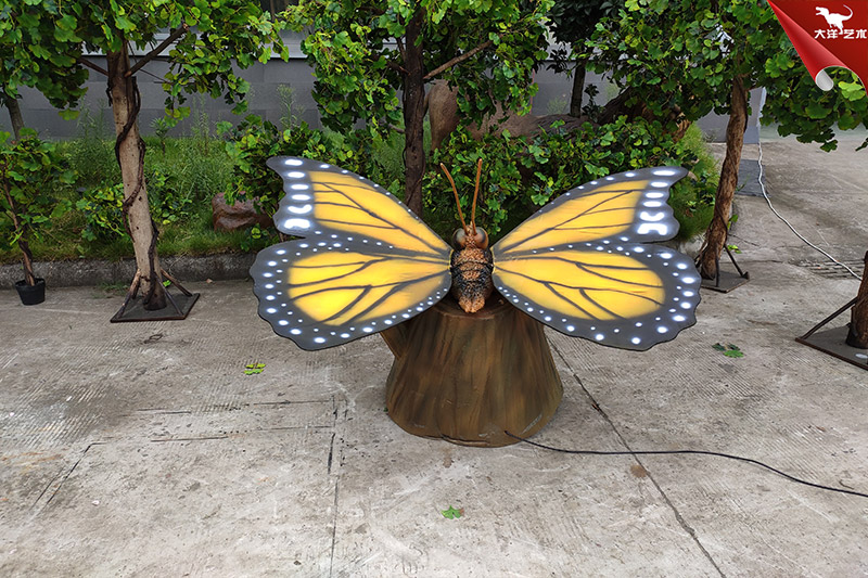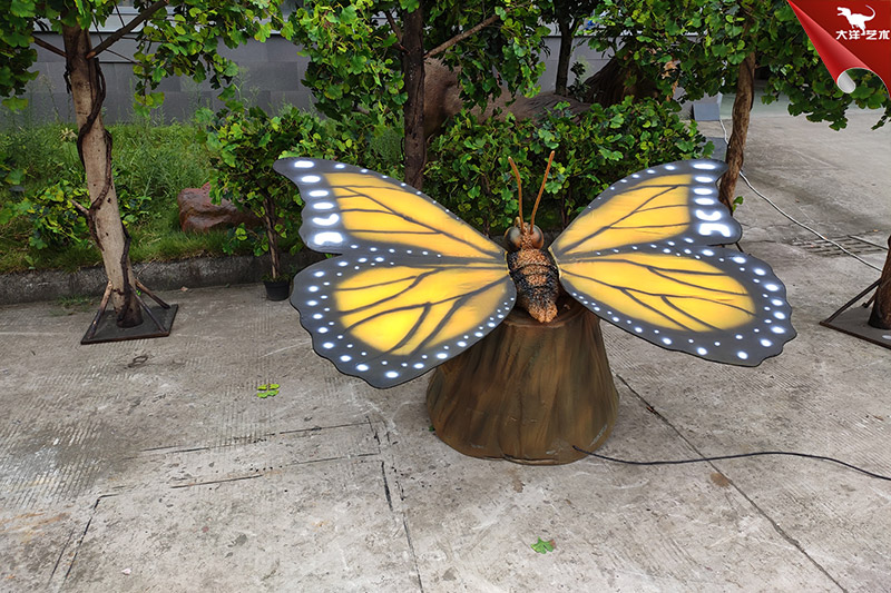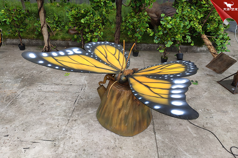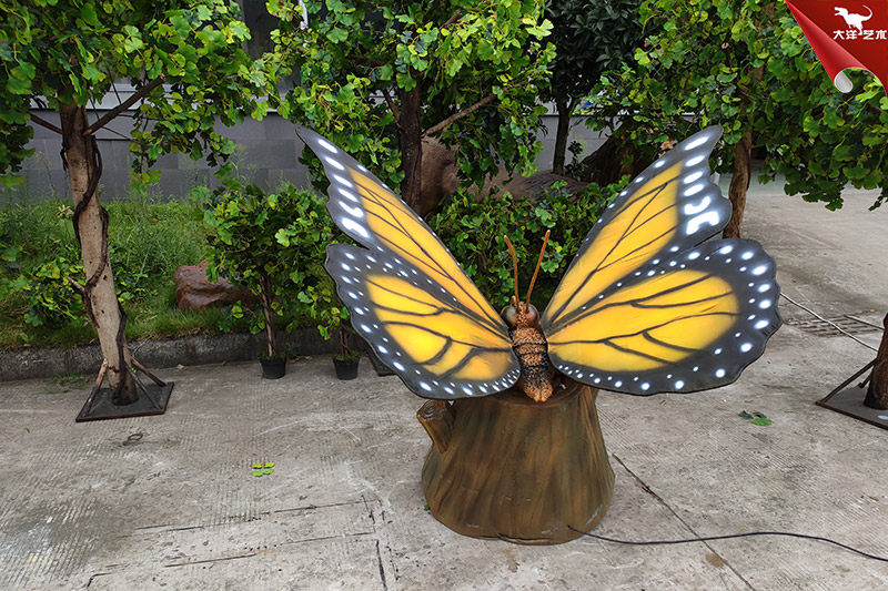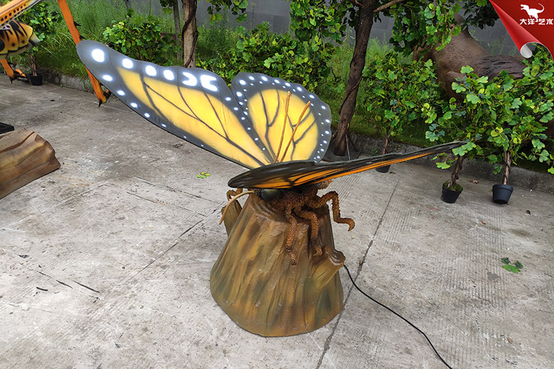 仿真蝴蝶是自貢大洋藝術(shù)有限責(zé)任公司-仿真恐龍制作工廠生產(chǎn)制作的。改仿真展品寬2米高1米左右,采用仿真恐龍技術(shù)制作,側(cè)才鮮艷、整體形象逼真。配合翅膀扇動(dòng)可發(fā)出蝴蝶飛翔的聲音。該展品主要用于動(dòng)物主題公園、商業(yè)活動(dòng)展覽、游樂場(chǎng)等場(chǎng)所!