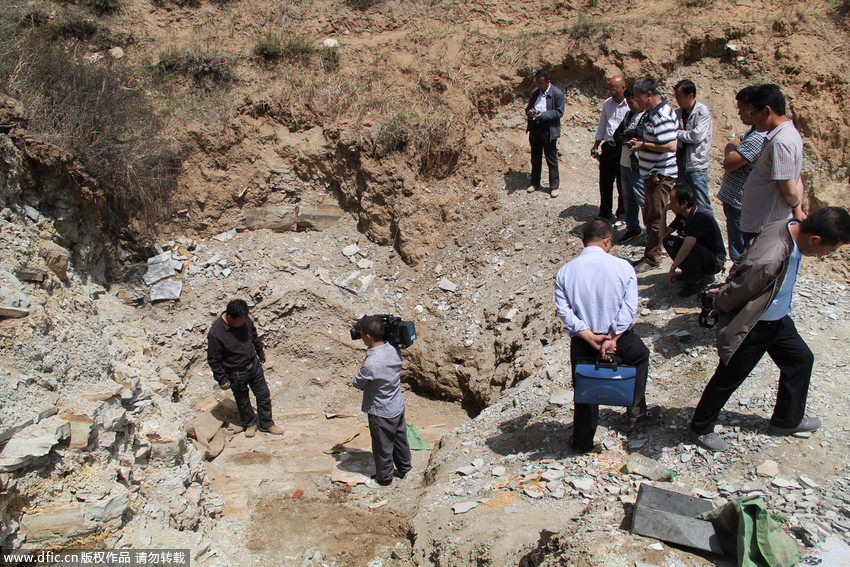 圖為“恐龍化石”發(fā)現(xiàn)現(xiàn)場(chǎng)。 王月 攝