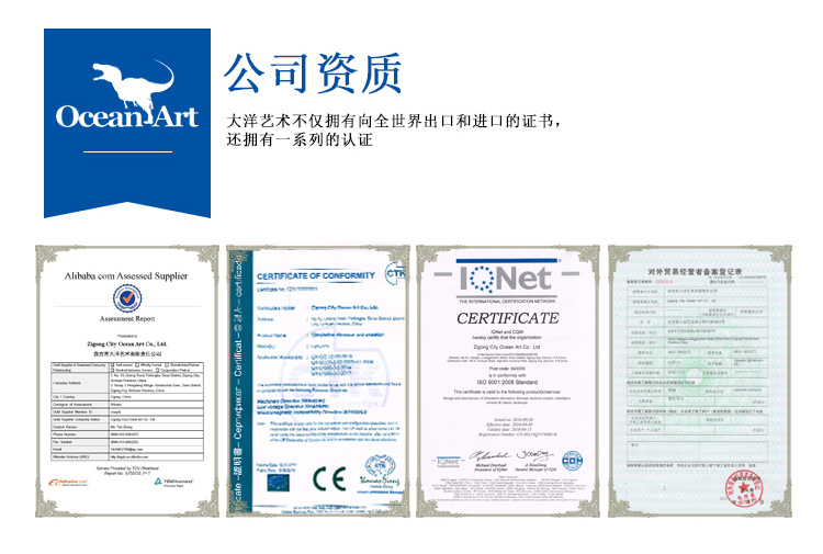 備注: 我們所制作的仿真恐龍展品和骨架模型展品被中國(guó)科學(xué)院古脊椎所鑒定為“優(yōu)秀科研作品”被譽(yù)為”侏羅紀(jì)“的在現(xiàn)者。我們將秉承客戶至上的理念,為客戶設(shè)計(jì)和制造恐龍展品,并根據(jù)客戶的要求提供3年以上質(zhì)量保證,并長(zhǎng)期為客戶提供培訓(xùn)安裝維修人員和配件等售后服務(wù),為顧客解除了恐龍展品長(zhǎng)期使用展覽的后顧之憂。