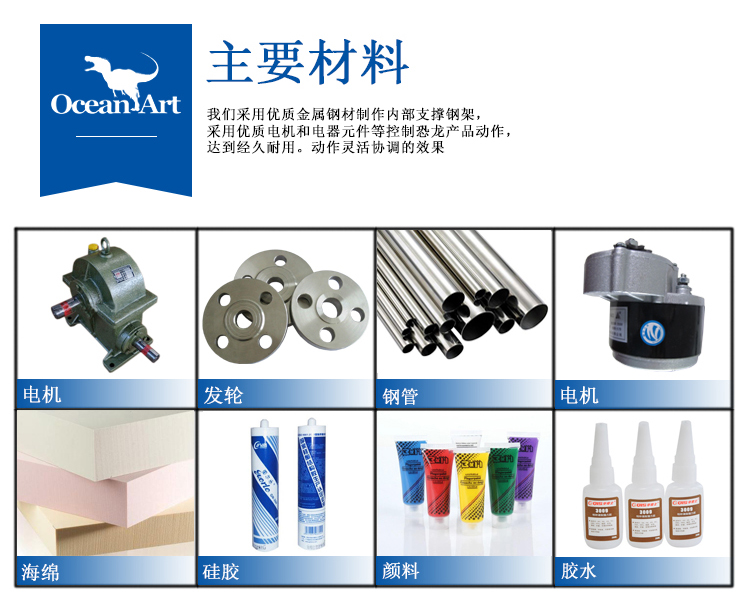 4. 采用優(yōu)質(zhì)電機和電器元件控制恐龍展品動作,達到經(jīng)久耐用動作靈活協(xié)調(diào)的效果。