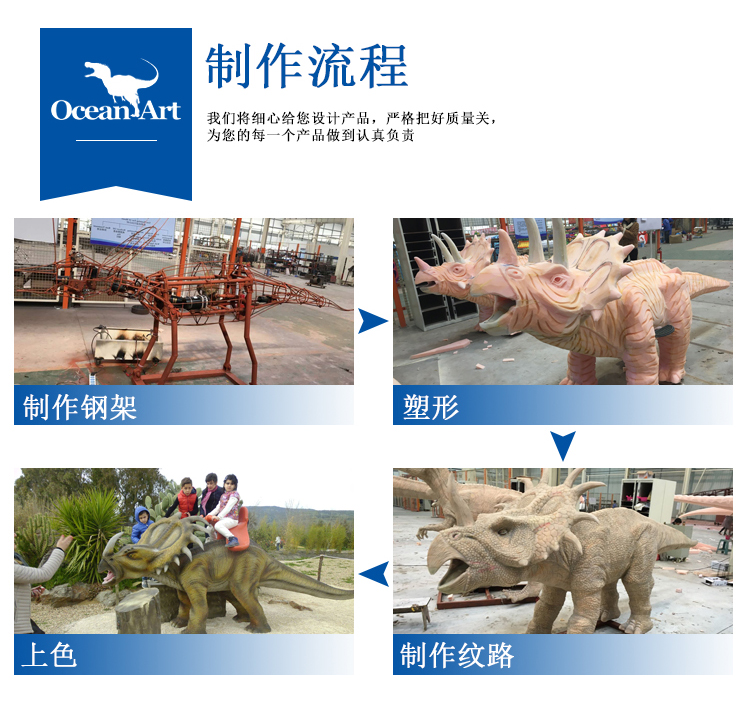 備注: 我們所制作的仿真恐龍展品和骨架模型展品被中國科學(xué)院古脊椎所鑒定為“優(yōu)秀科研作品”被譽為”侏羅紀“的在現(xiàn)者。我們將秉承客戶至上的理念,為客戶設(shè)計和制造恐龍展品,并根據(jù)客戶的要求提供3年以上質(zhì)量保證,并長期為客戶提供培訓(xùn)安裝維修人員和配件等售后服務(wù),為顧客解除了恐龍展品長期使用展覽的后顧之憂。