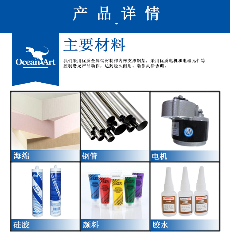 4、采用優(yōu)質(zhì)電機和電器元件控制恐龍展品動作,達到經(jīng)久耐用動作靈活協(xié)調(diào)的效果。
