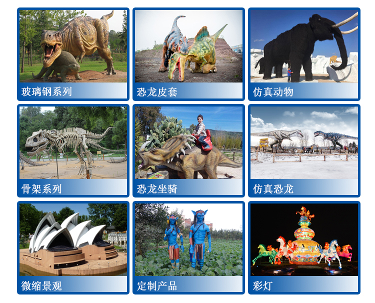 備注:我們注重展覽和產(chǎn)品本身的文化底蘊及科技含量,并且關注產(chǎn)品與觀眾的互動性、娛樂性和參與性,因此,我們先后推出了騎乘恐龍、打斗恐龍組、生蛋龍、蓋章恐龍、恐龍衣服等一系列,科技含量高,故事情節(jié)豐富,娛樂參與性極強的產(chǎn)品,深受廣大消費者的青睞。除了產(chǎn)品的研發(fā)與制造,公司的營銷核心是一套成熟的、創(chuàng)新性的展覽理念,并在海內(nèi)外都取得了廣泛的成功!