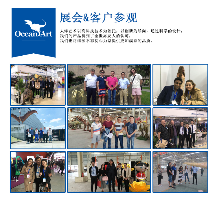 備注:我們注重展覽和產(chǎn)品本身的文化底蘊及科技含量,并且關(guān)注產(chǎn)品與觀眾的互動性、娛樂性和參與性,因此,我們先后推出了騎乘恐龍、打斗恐龍組、生蛋龍、蓋章恐龍、恐龍衣服等一系列,科技含量高,故事情節(jié)豐富,娛樂參與性極強的產(chǎn)品,深受廣大消費者的青睞。除了產(chǎn)品的研發(fā)與制造,公司的營銷核心是一套成熟的、創(chuàng)新性的展覽理念,并在海內(nèi)外都取得了廣泛的成功!